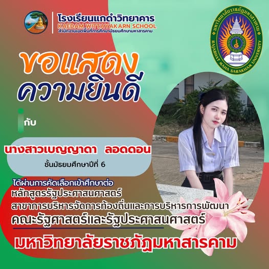 โรงเรียนแกดำวิทยาคารยินดีต้อนรับทุกท่านด้วยความยินดียิ่ง